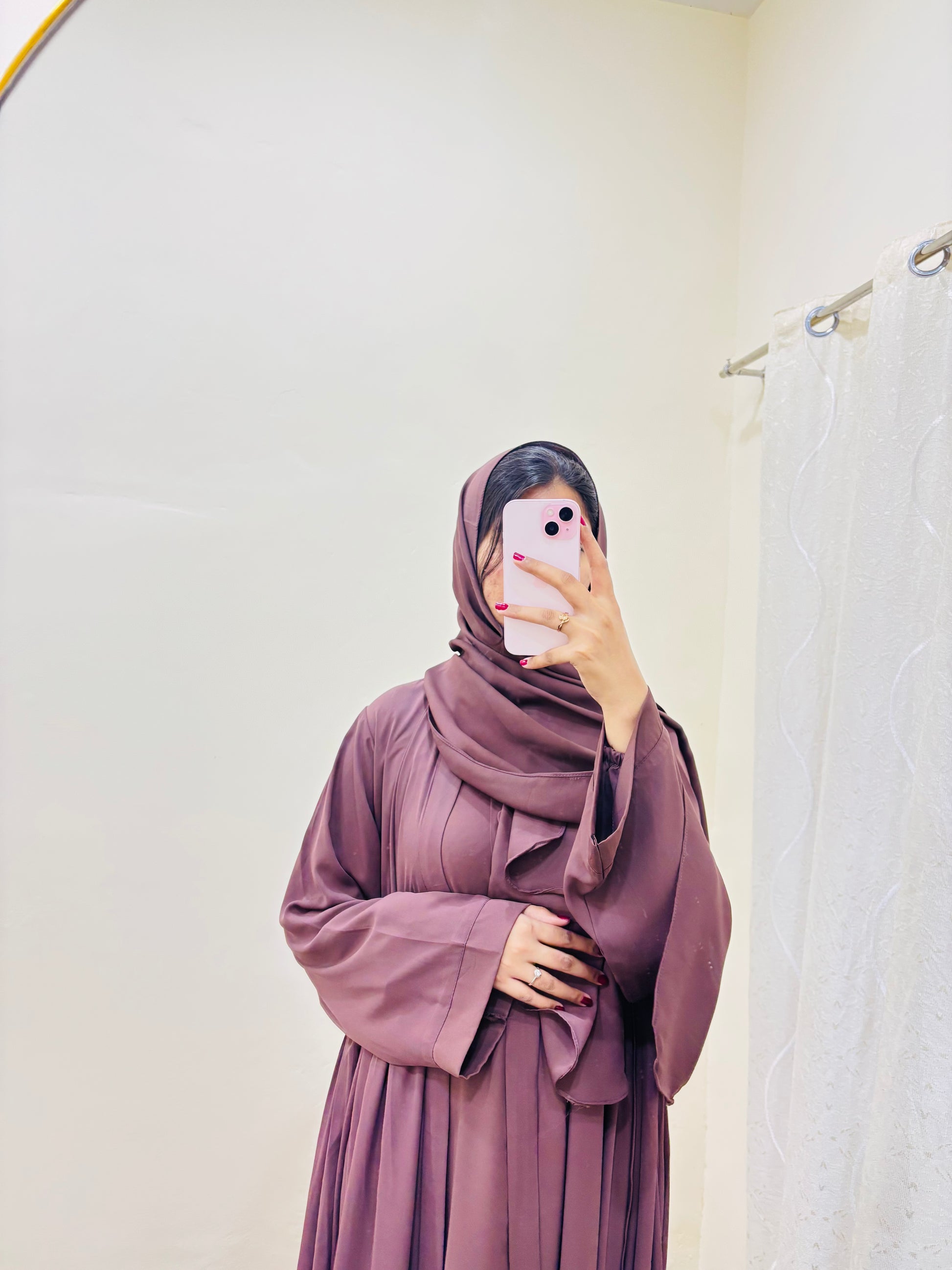 Grace meets elegance in this pastel frock-style abaya, designed with a modern front-open silhouette and crafted in two flowing layers for a regal, graceful drape. The soft pastel tone exudes sophistication, while the layered design adds depth, volume, and a couture-inspired charm.